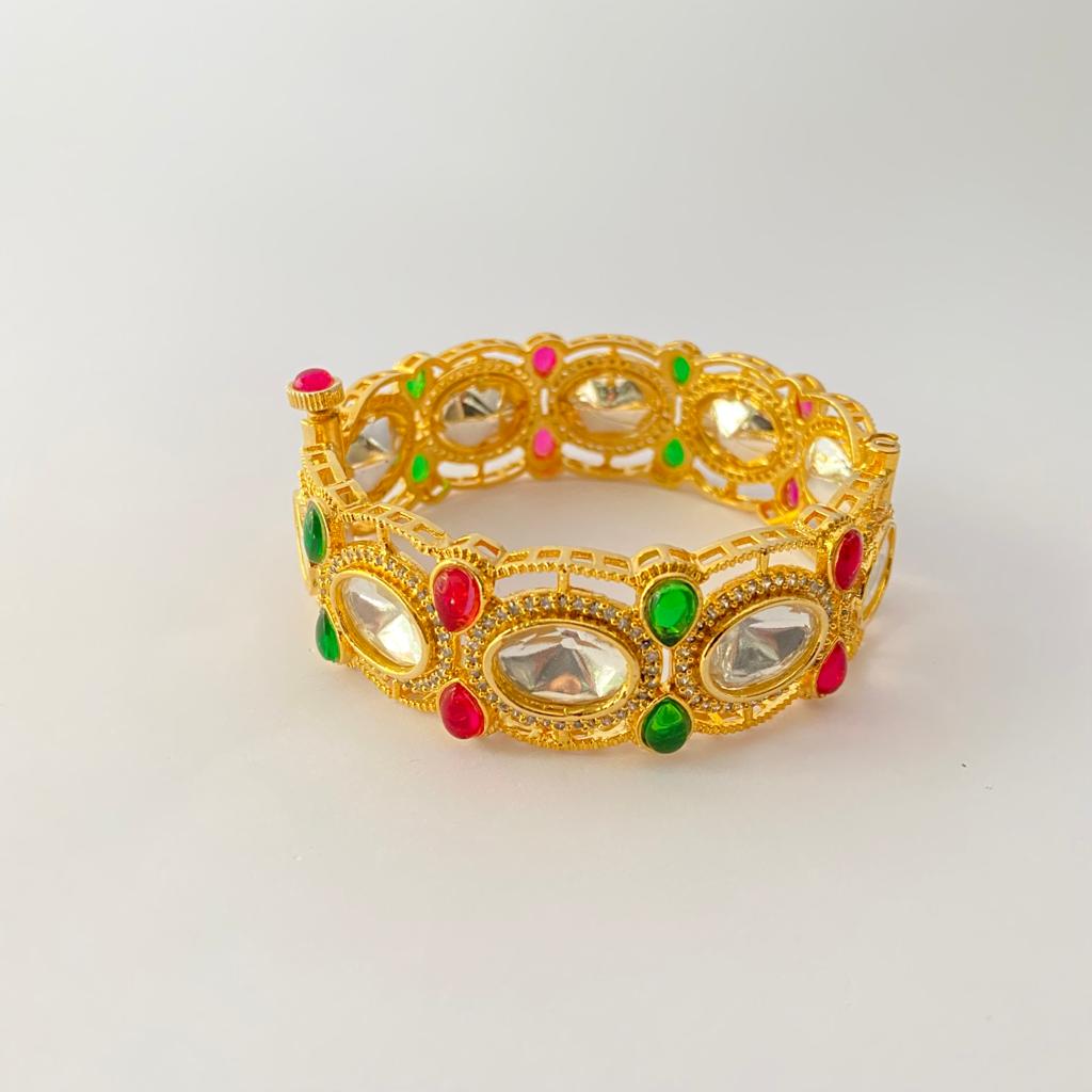 Ruby Emerald With Polki Gold Plated Sigle Bangle.