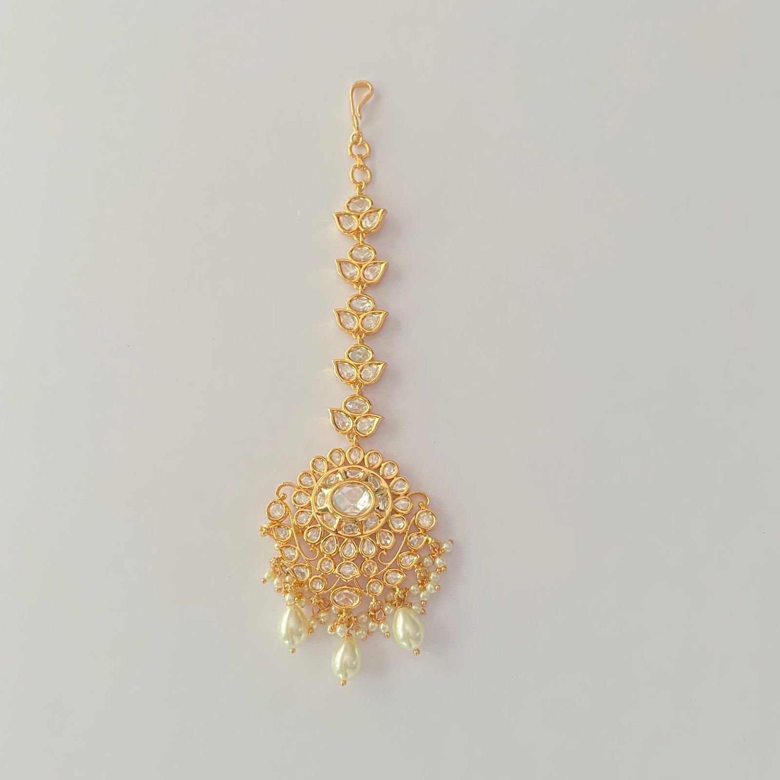 Stylish Polki Rose Gold Pearl Drop mangtika