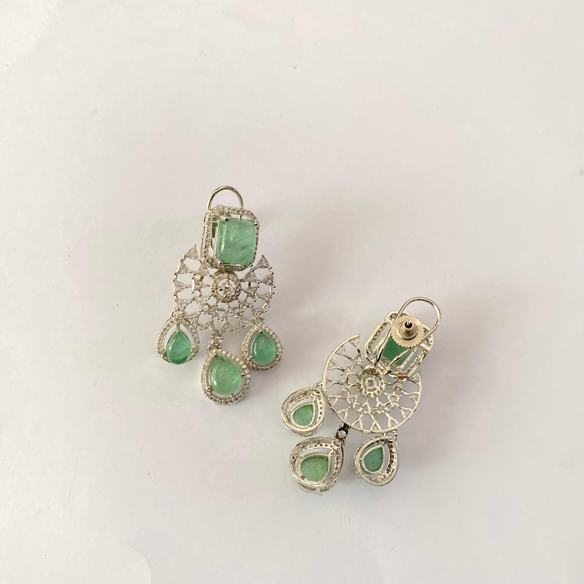 Pink Mint Silver plated multi Layer Diamond Necklace Set