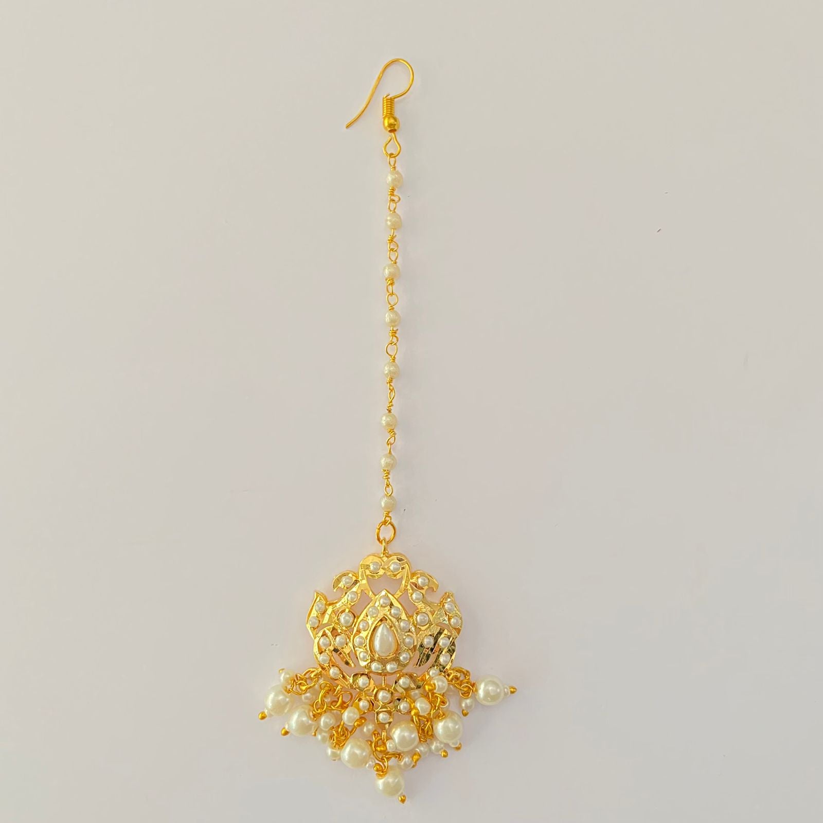 White pearl gold plated small mangtikka