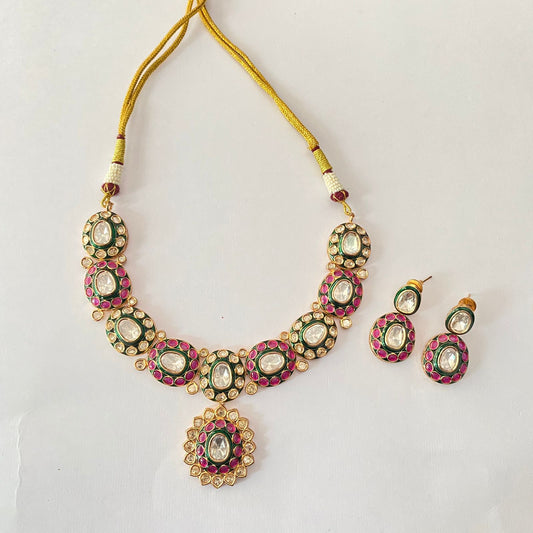 Moissanite Kundan long Ruby Necklace Set