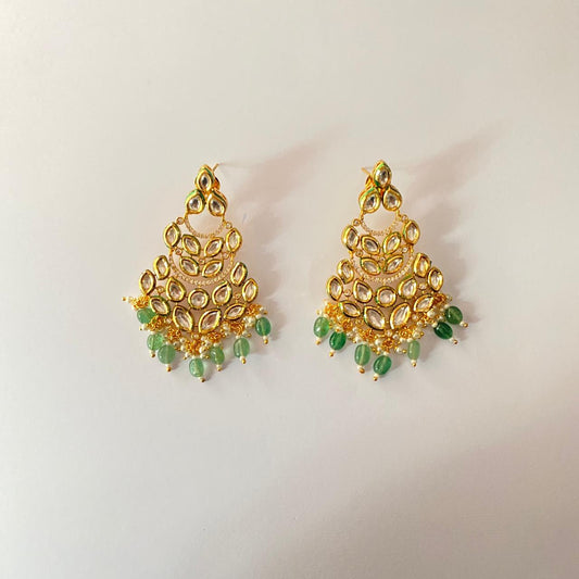 Green Beads Gold Plated Kundan Earring